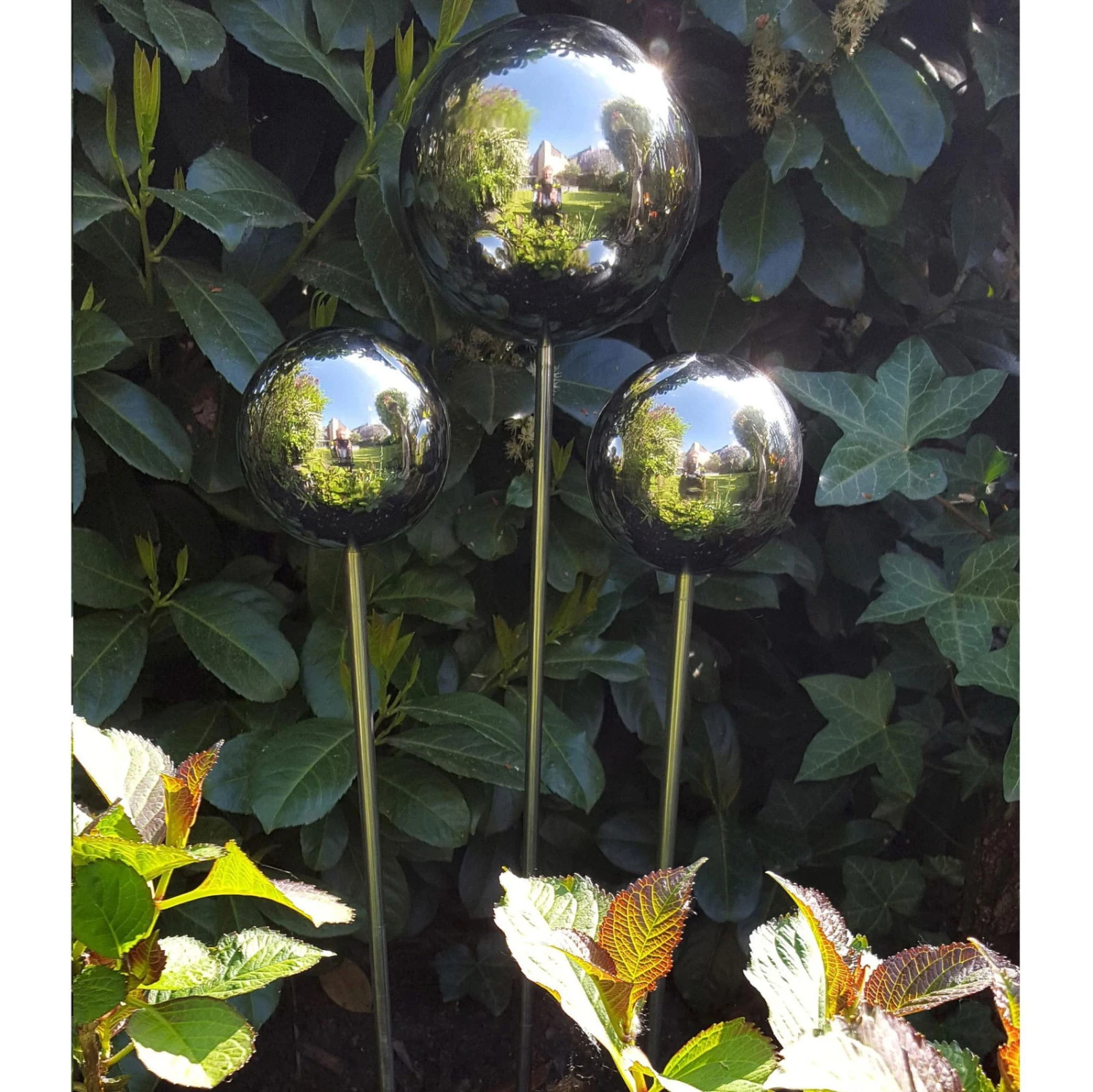 Beetstecker Rosenkugel, 15 Cm, Edelstahl / Poliert, Rosenstab 80 Cm