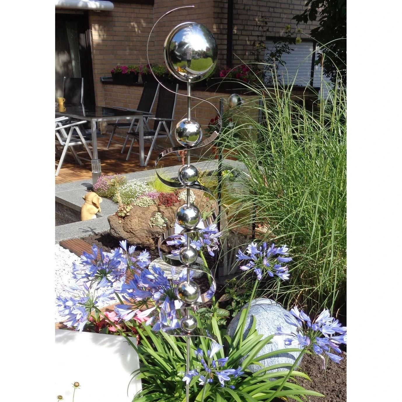 Der wundervolle Beetstecker Uranus aus Edelstahl macht aus jedem Rosenbeet ein prachtvolles Kunstwerk. Der moderne Gartenstecker mit insgesamt 7 Kugeln und passendem Stab wird einfach in die Erde von Blumenbeeten oder Pflanzenkübeln gesteckt und zieht mit seiner stilvollen Optik alle Blicke auf sich.